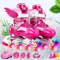 Adjustable Kids Roller Skates Set - Flash Wheels Size m - Pink