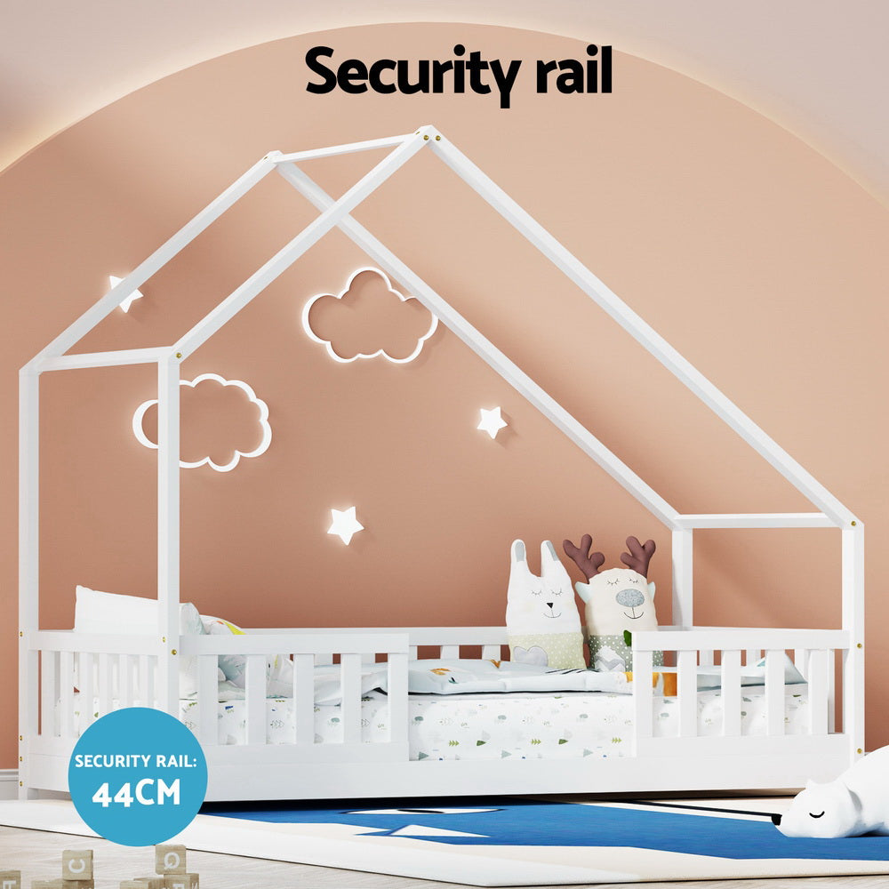 Artiss Bed Frame Wooden Kids House Single Frame White PAVO