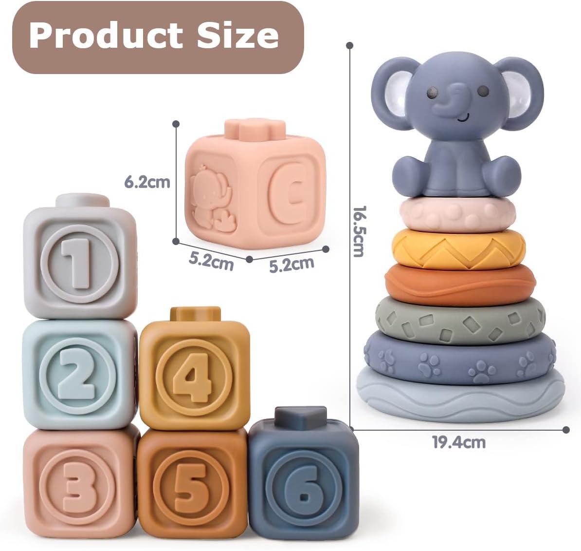 - 【Stacking Blocks Toys】13 Baby Soft Blocks - Includes 6 Soft Blocks, 6 Soft Stacking Rings and a Elephant. Each block comes in a different color cultivate baby's color perception ability. Just the right size, suitable for the baby to grasp, easy for them to pick up and stack, your baby will love.