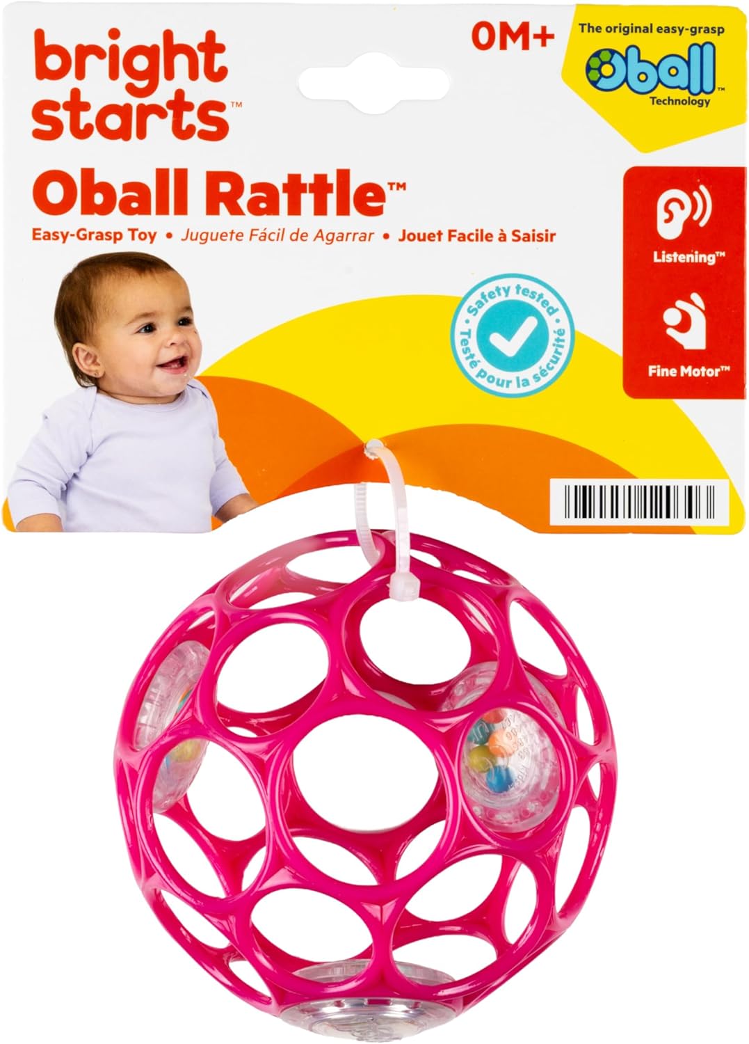 Bright Starts Oball Easy-Grasp Rattle BPA-Free Infant Toy in Pink, Age Newborn and up, 4 Inches