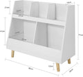 - This kid-friendly storage shelf is perfect for organizing books, toys, and more. Its five compartments provide plenty of space for your child's belongings, while the slanted legs made of solid wood ensure stability and safety. Keep your little one's room neat and tidy with this must-have storage solution.