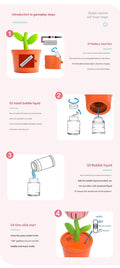 - Install Bubble Solution: Unscrew the bubble solution bottle cap counter-clockwise, remove the seal, and then screw the bubble solution bottle clockwise into the base of the flower.