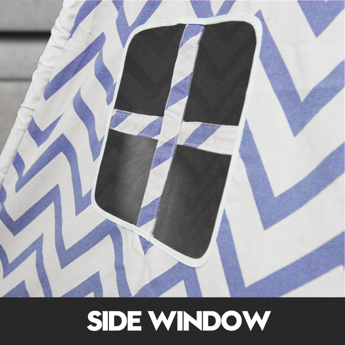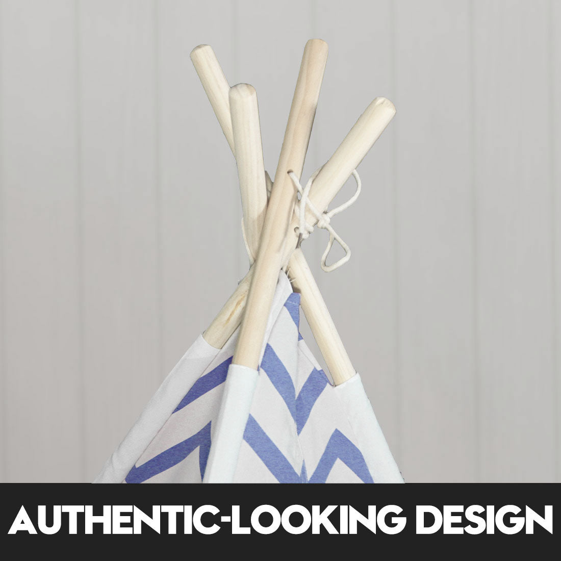 Entertaining the children will be easy with this realistic teepee. Ideal for creating magical places, elaborate games and inspiring physical activity. Suitable for both inside the house or outside in the garden, the adorable patterns and vibrant colours will make it a sure-fire hit at playtime. This teepee is finished in smooth wooden poles and covered in durable, cotton canvas. There is even a side window so you can keep an eye on what's happening from the outside, tie-down doors and a matching floor mat. Lovely to look at and lovely to think your children be entertained for hours!