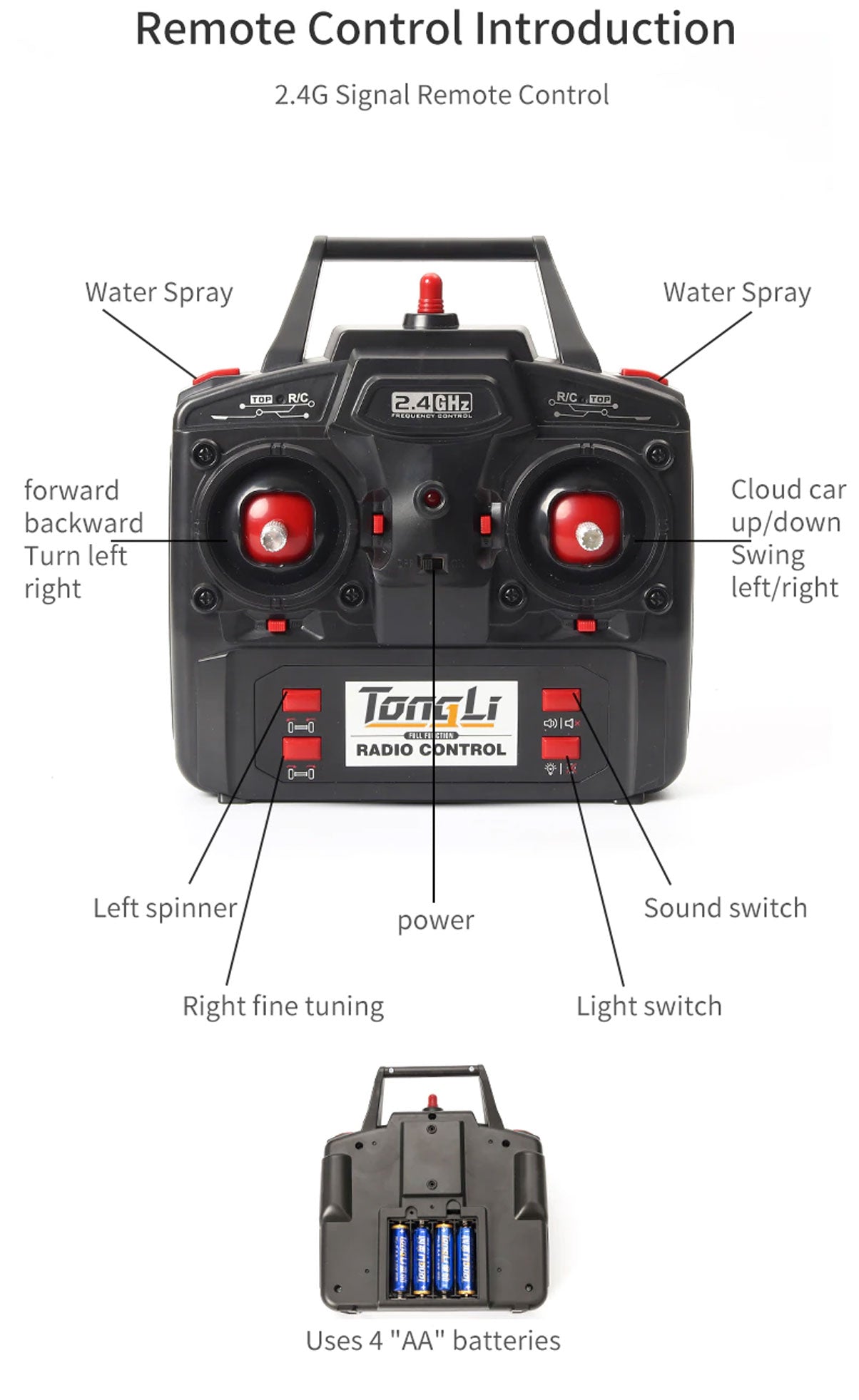 - Body battery: 7.4V 1200mAh lithium battery