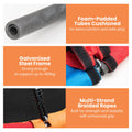 Get ready for endless swinging fun with Kahunas tree swing set! It features a sturdy galvanised pipe frame, comfy padded foam tubes and fun extras like colourful flags. With extension straps, carabiners, and mountaineering buckles included, setting it up is super easy, just hang it up and let the good times roll. It is perfect for kids who love to swing, sway and enjoy the great outdoors!