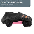 With its bright headlights and 50W motor, this car is ready for a spin around the neighbourhood. The four-wheel suspension system ensures a steady ride, while the seatbelt and parent remote keep your child safe at all times.