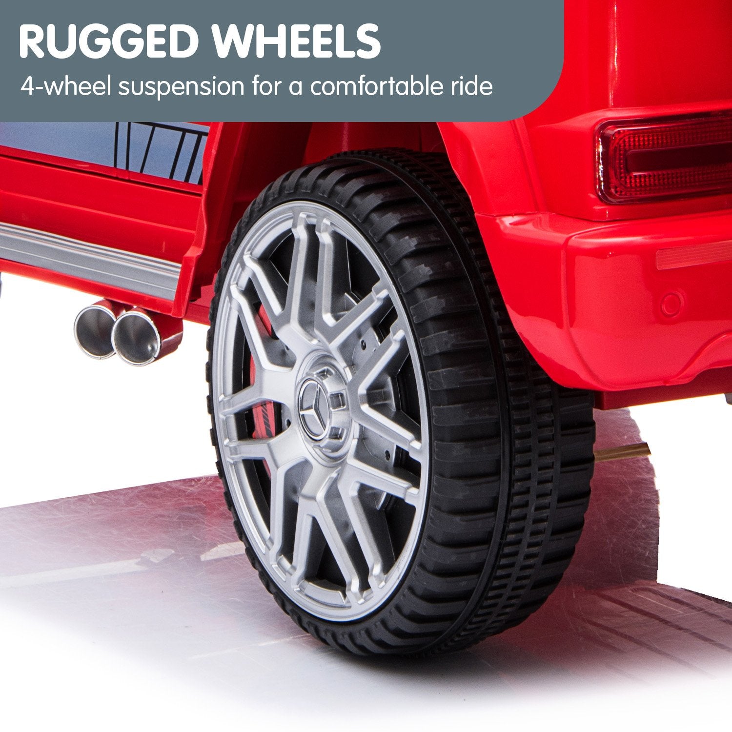 Introducing the Mercedes Benz AMG G63 Ride On Car - the most exciting gift for little car enthusiasts. This sporty Mercedes-licensed replica boasts the boxy silhouette and cool detailing of its full-size counterpart.