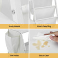 Crafted from water-resistant PB melamine with a sturdy metal frame, this white bookshelf wipes clean easily and withstands daily use. The added fabric pocket offers extra storage for small items. Measuring 75H �� 30W �� 83D cm and suitable for ages 3+, it helps develop tidying habits while fitting perfectly in bedrooms or playrooms. Simple assembly required with all hardware included.