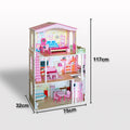 Large Wooden Dolls Doll House 3 Level Kids Pretend Play Toys Full Furniture