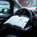 Simply secure to steering wheel when stationary for an instant lunch table or turn upside down for an "on-the-road" work bench.