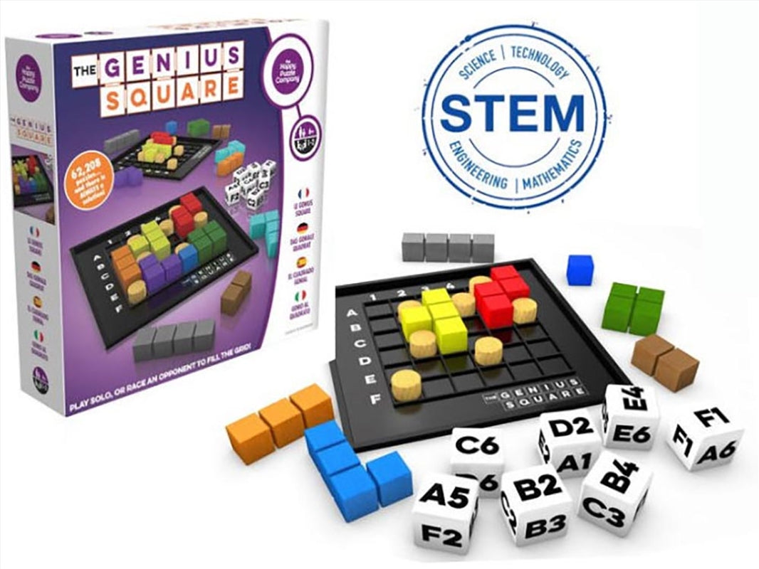 The Genius Square is an award winning and well-made puzzle game that you will become addicted to! Each puzzle can be solved from the 62,208 possible solutions. Play solo, or race an opponent to fill the grid. All of arrangements have AT LEAST one possible solution for each, and maybe even more! Recommended Ages: 6+ .