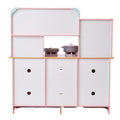 Dive into a world of fun with our wooden play kitchen! Designed to mimic real-life activities, this play kitchen features a stove with realistic lights and sounds, a sink, a washing machine, an oven, an ice maker, and a microwave. It's perfect for sparking creativity, improving fine motor skills, and encouraging teamwork as kids cook up delicious meals.